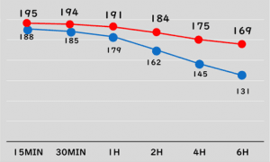 グラフ横軸:高温槽(40℃)にて基材を放置した時間