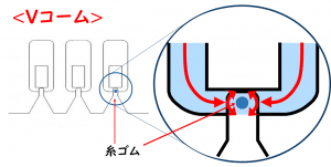 Vコームと従来品を用いた糸ゴムの保持力ホットメルト材料の消費量についての検証